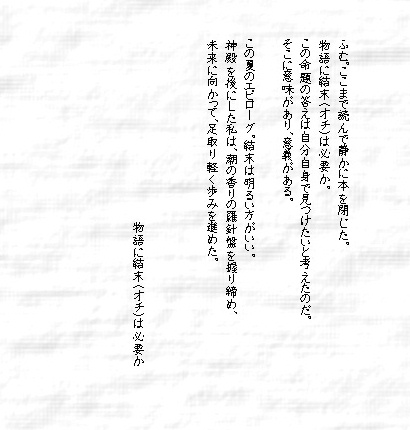 端的に言えば、話の終わりを印象付ければそれでいいのだ