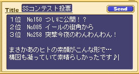 コンチェ内でモンモランシー宛にメールでご投票下さい。お一人様一回限り有効とします